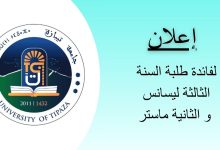 سينعقد المجلس التأديبي لكلية علوم الطبيعة و الحياة يوم الإثنين 16 فيفري 2026 بقاعة المكتبة (الطابق الأرضي). الطلبة الآتية أسماؤهم…